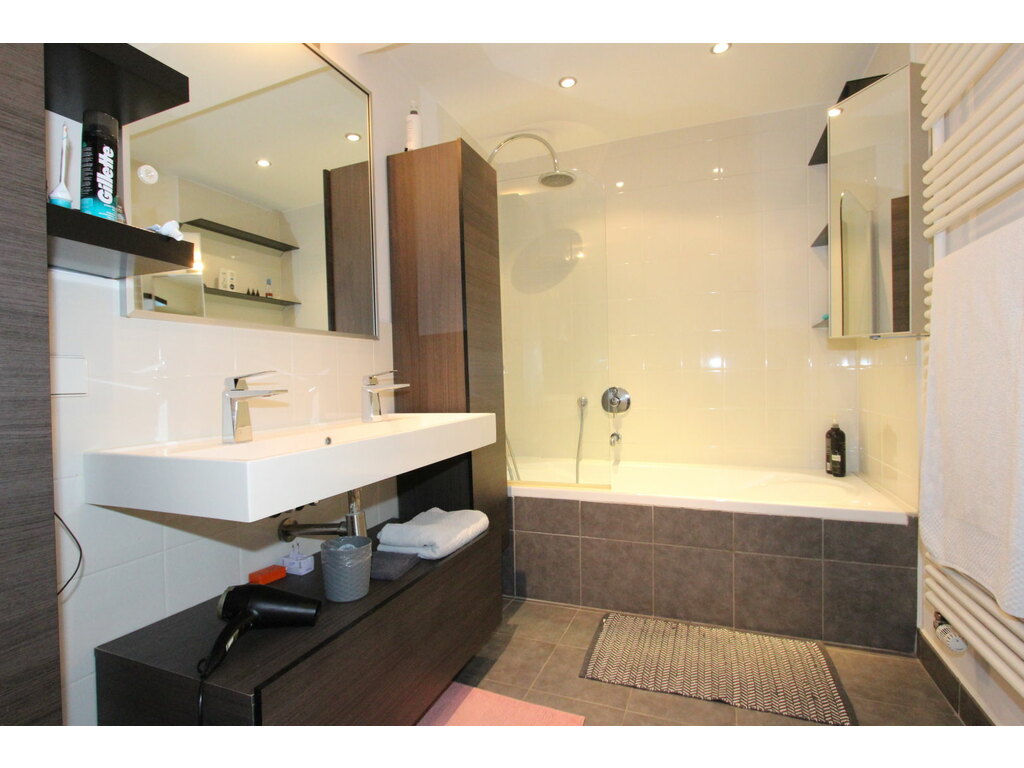 Complètent l'appartement une grande salle de bains (lavabo et baignoire) et un WC séparé. Au fond du couloir vous disposerez d'un débarras dans lequel se trouvent la machine à laver et le séchoir, tandis que au sous-sol vous aurez deux caves.