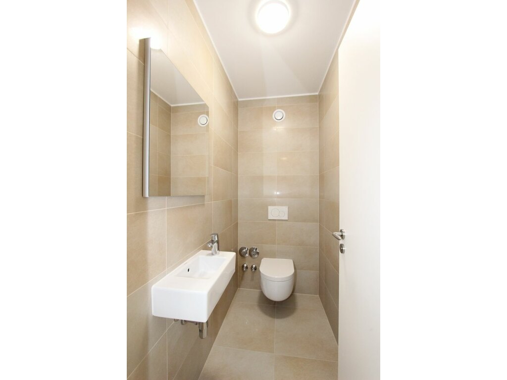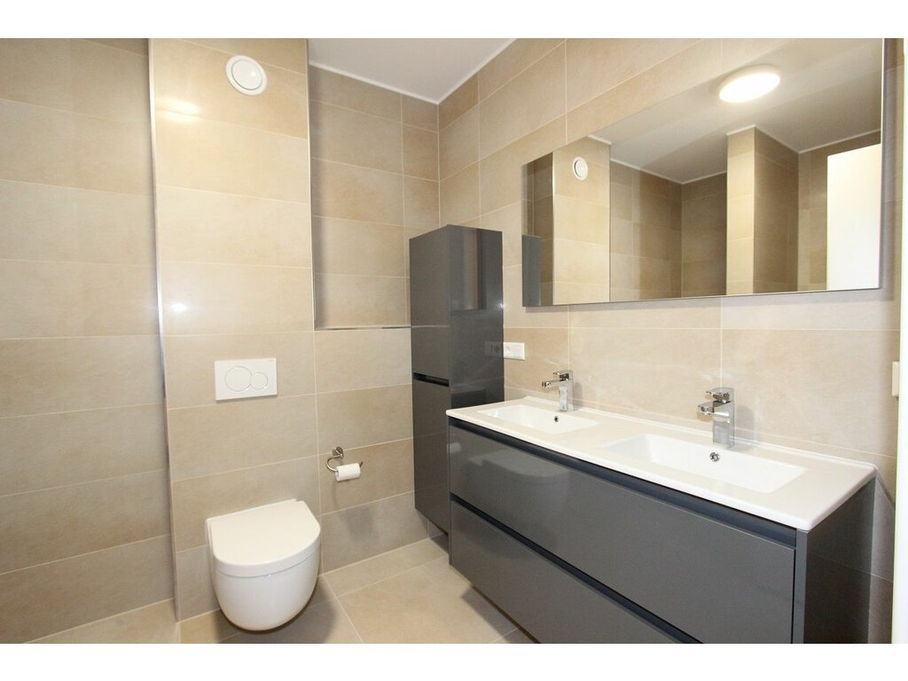 L'appartement est dotée d'un living de 31,00 m2 avec cuisine équipée ouverte, de deux belles chambres à coucher, avec armoires, respectivement de 15,20 m2 et 12,70 m2, d'une salle de douche de 6,30 m2 avec emplacement pour la machine à laver et le sèche-linge, d'un WC séparé et d'un locale de stockage.