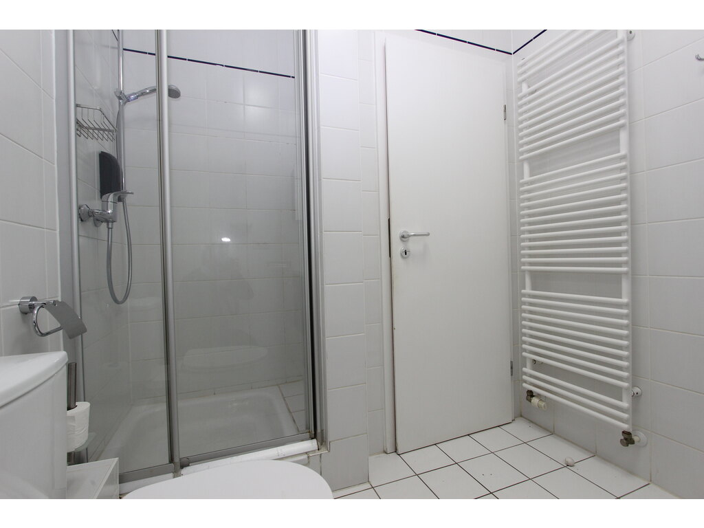 - Salle de douches de 3.68 m2 avec porte-savon, lavabo + miroir + meuble de rangement, sèche serviettes et WC ainsi qu'un emplacement pour votre machine à laver/sèche-linge,