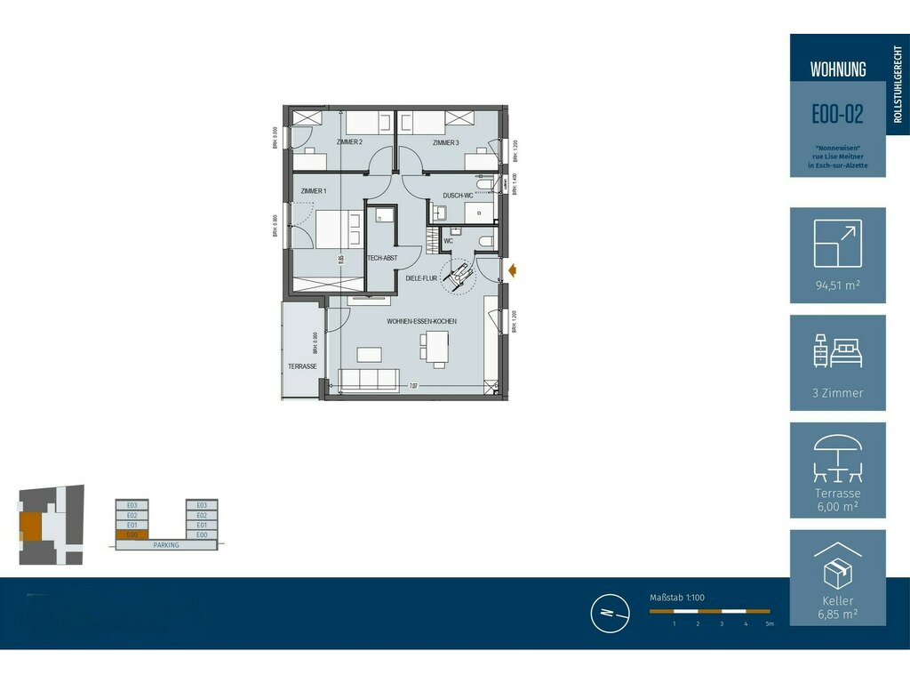 Discover Lyra Residence, located in the sought-after Nonnewisen district of Esch-sur-Alzette in southern Luxembourg. Enjoy a peaceful living environment in this modern, stylish development designed to meet all your needs. Whether you're a family, a young professional, or a retiree, these spacious, accessible apartments (suitable for people with reduced mobility) combine comfort, quality of life, and practicality — all just steps from schools, shops, and public transport. An exceptional opportunity to invest in a premium environment.