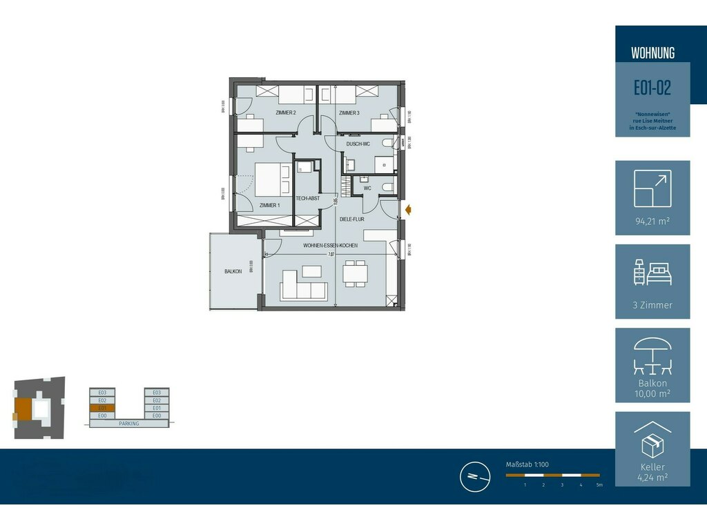 - A vendre: appartement E01-02 en état de futur achèvement (VEFA)
