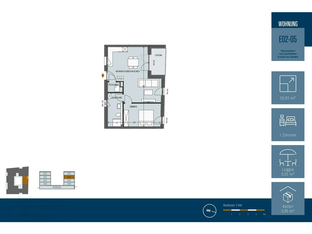 Découvrez la Résidence "Lyra", dans le quartier de Nonnewisen à Esch-sur-Alzette, au sud du Luxembourg. Profitant d'un cadre de vie calme, cette résidence offre des appartements modernes, élégants et parfaitement conçus pour répondre à tous vos besoins. Que vous soyez une famille, un.e jeune professionnel.le ou une personne retraitée, ces logements spacieux et accessibles pour les personnes à mobilité réduite allient confort, qualité de vie et praticité, à deux pas des écoles, commerces et transports. Une opportunité rare pour investir dans un environnement d'exception !