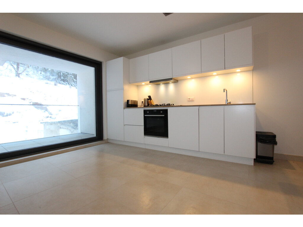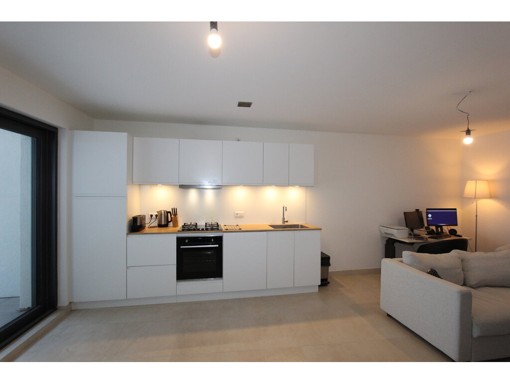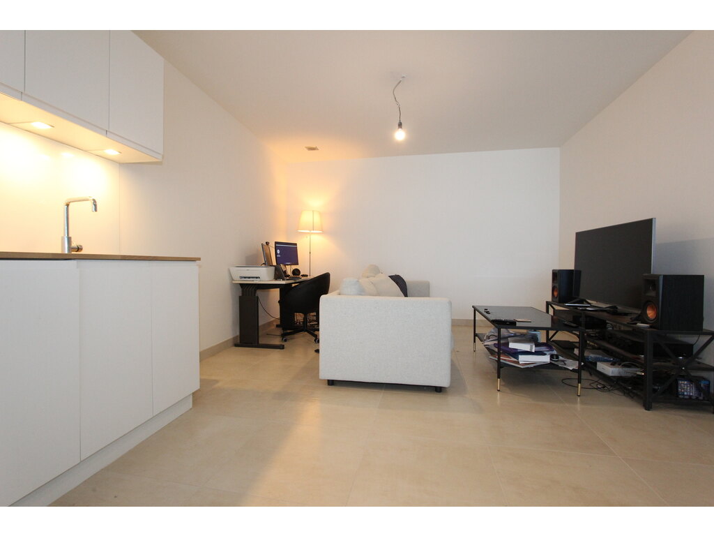 From the entrance hall you will find the 16.70 m2 bedroom on the left and the shower room on the right. Straight ahead is the +/- 33.00 m2 living/dining room with a bay window opening onto the +/- 8 m2 balcony.