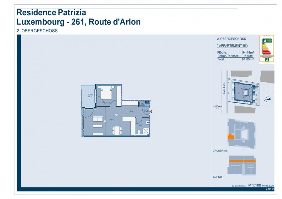 ** APARTMENT 45 ** For sale in the Residence Patrizia, in Luxembourg-Belair, near the hospital CHL and beside the Commission de Surveillance du Secteur Financier (CSSF) apartment of 54.45 m2 with very neat and upscale finishes.